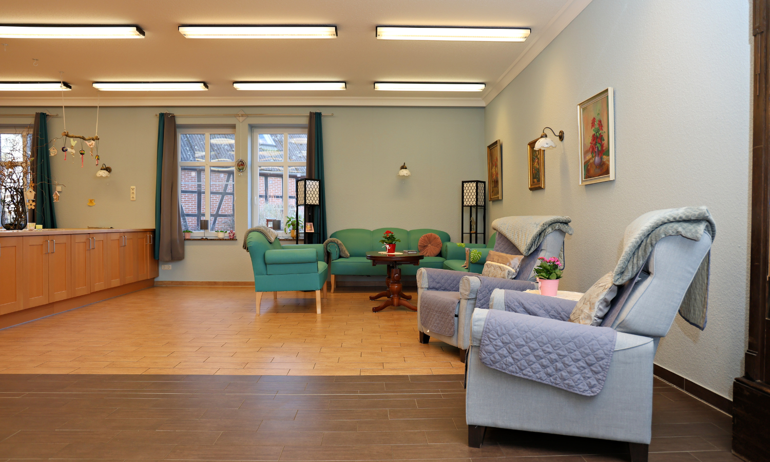 Unsere Tagespflege ist auf die besonderen Bedürfnisse von Menschen mit Demenz oder anderen Beeinträchtigungen eingestellt. Die ansprechend eingerichteten Räume fördern Orientierung, schaffen schöne Erinnerungsmomente und tragen zu einem wohltuenden Gefühl von Sicherheit bei.