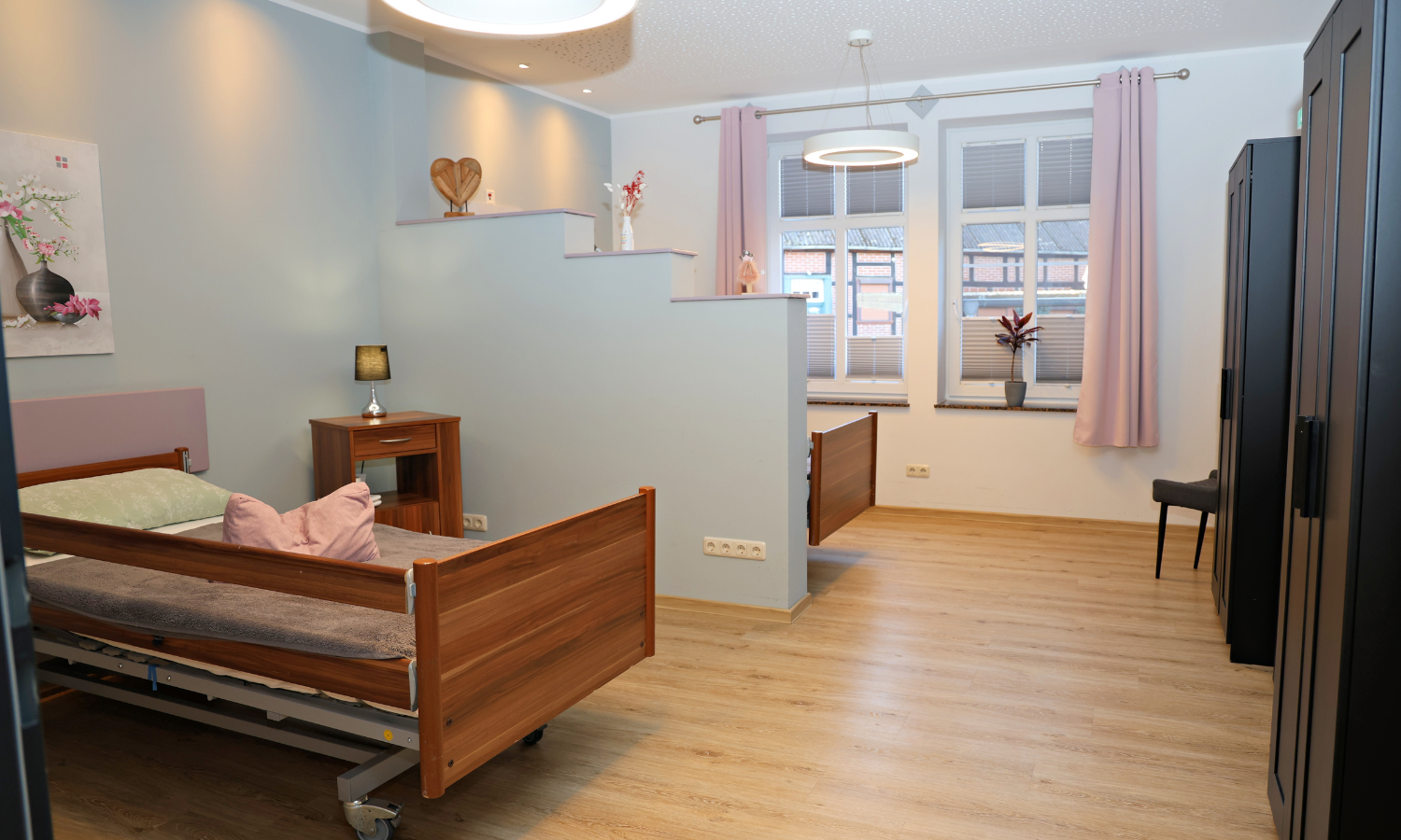Helle Gemeinschaftsbereiche, vier gemütliche Ruheräume sowie eine hauseigene Küche, in der täglich frisch gekocht wird, sorgen für eine angenehme Atmosphäre, in der sich unsere Gäste rundum wohlfühlen können – mit Raum für Geselligkeit wie auch für individuelle Rückzugsmöglichkeiten.